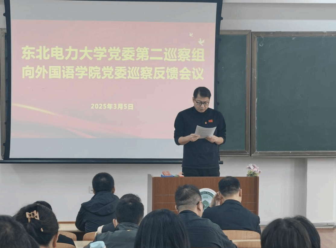 2025年3月5日,党委第二巡察组向外国语学院党委反馈巡察情况。学校党委巡察工作领导小组成员、学校纪委副书记陈万福出席反馈会议,传达了学校党委书记张静辉在听取党委第二轮巡察情况汇报时的讲话精神,对巡察整改工作提出了明确要求。外国语学院党委书记王雷主持会议并作表态发言。