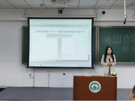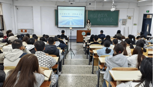 为充分发挥校友育人功能,做好职业规划,助力在校学生高质量就业,10月15日15:30,外国语学院在三教阶201开展校友报告会暨浙江春芽教育专场招聘宣讲会。本次报告会,由外国语学院日语专业2019届优秀毕业生刘乃闻女士主讲。外国语学院院长赵冠宇、学院副书记杜伟、辅导员张诗雅老师出席,毕业年级和25级同学参会。