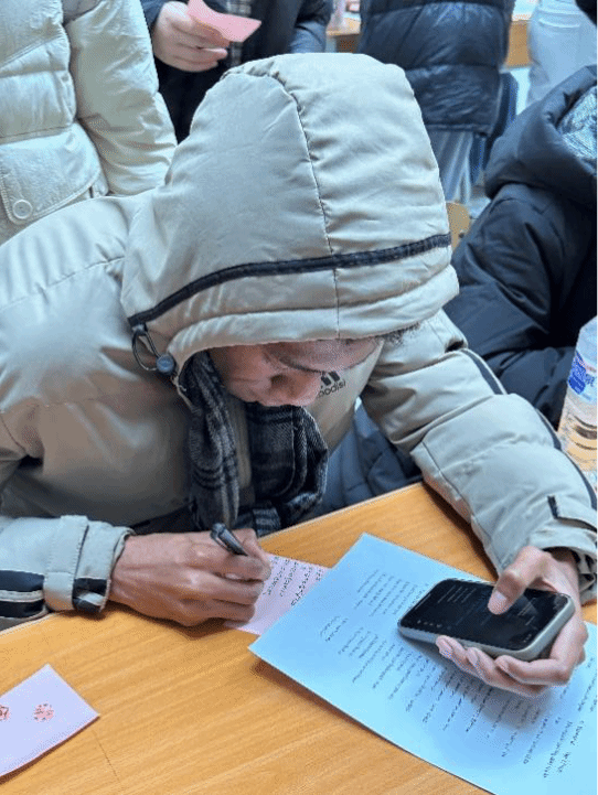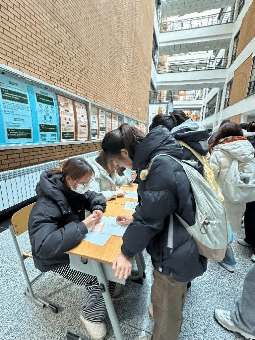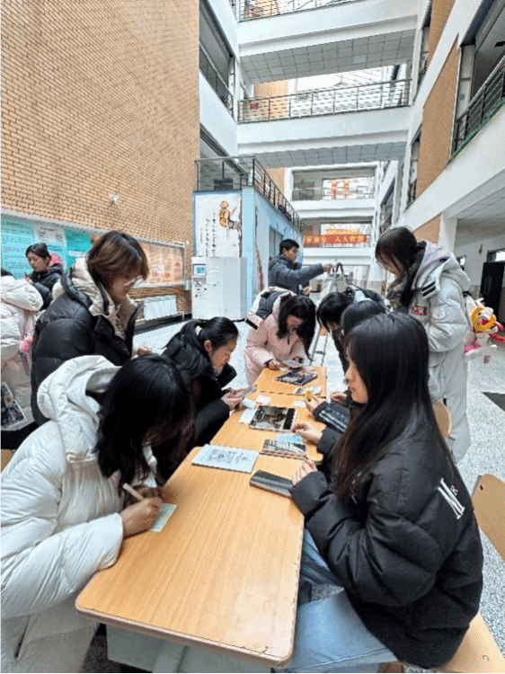 活动现场还设置了“灵感共享墙”,同学们纷纷留下自己的翻译作品与续写内容,互相欣赏、交流灵感,展现出丰富的创造力与语言表达能力。部分留学生主动分享母语中的类似表达,进一步促进了跨文化理解与语言交流