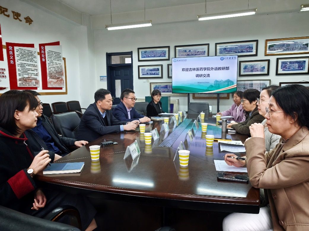 为深化大学英语教学改革,加强校际外语教学交流协作,共享优质教学经验,2026年4月13日,吉林医药学院外语教研部高晶主任带队来我院开展调研交流活动。东北电力大学外国语学院党政班子成员及相关系部负责人热情接待了调研团队,双方围绕外语教学,特别是大学英语教学改革相关事宜,展开了深入探讨与交流。