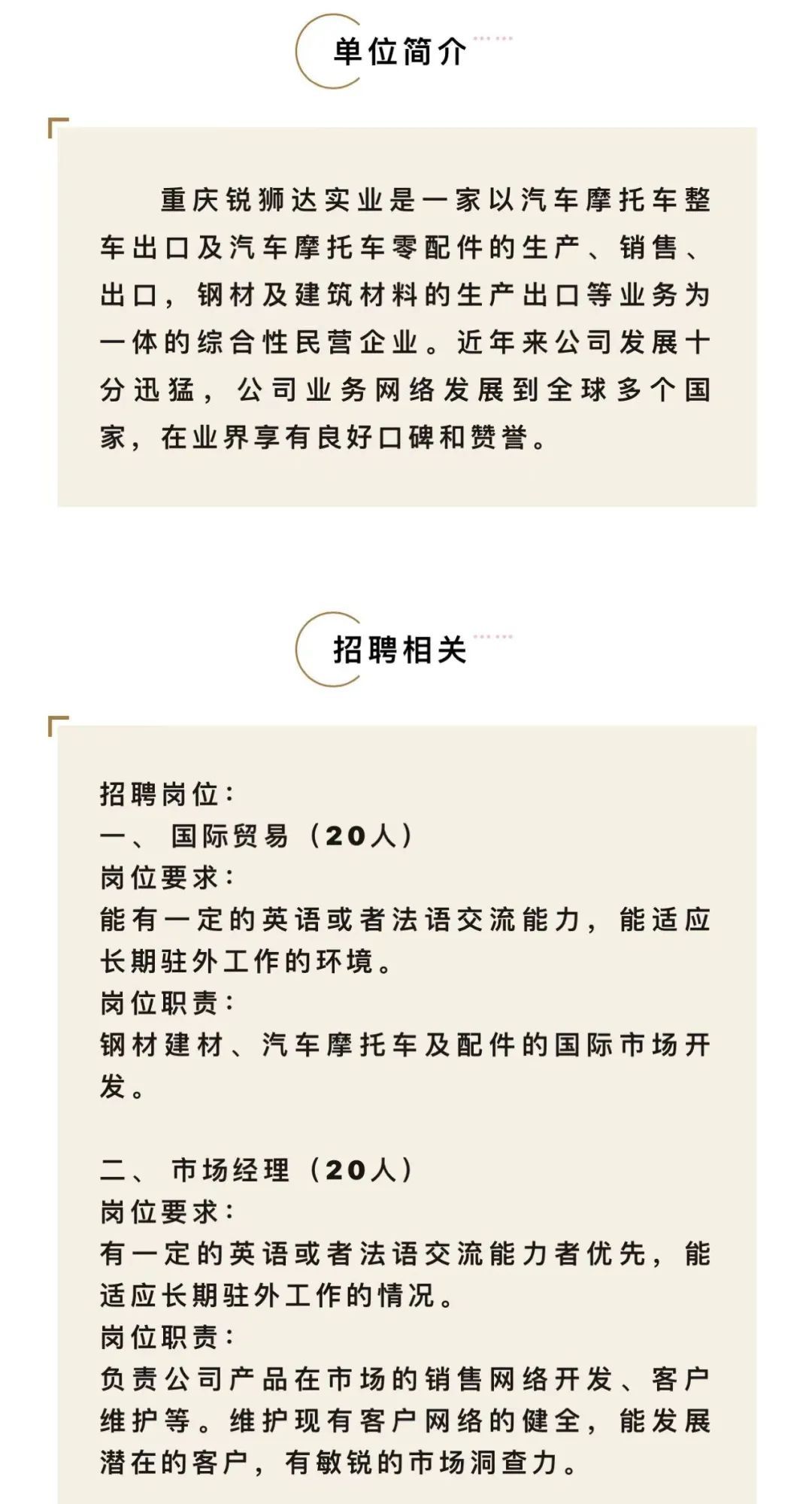 重庆锐狮达实业有限公司招聘