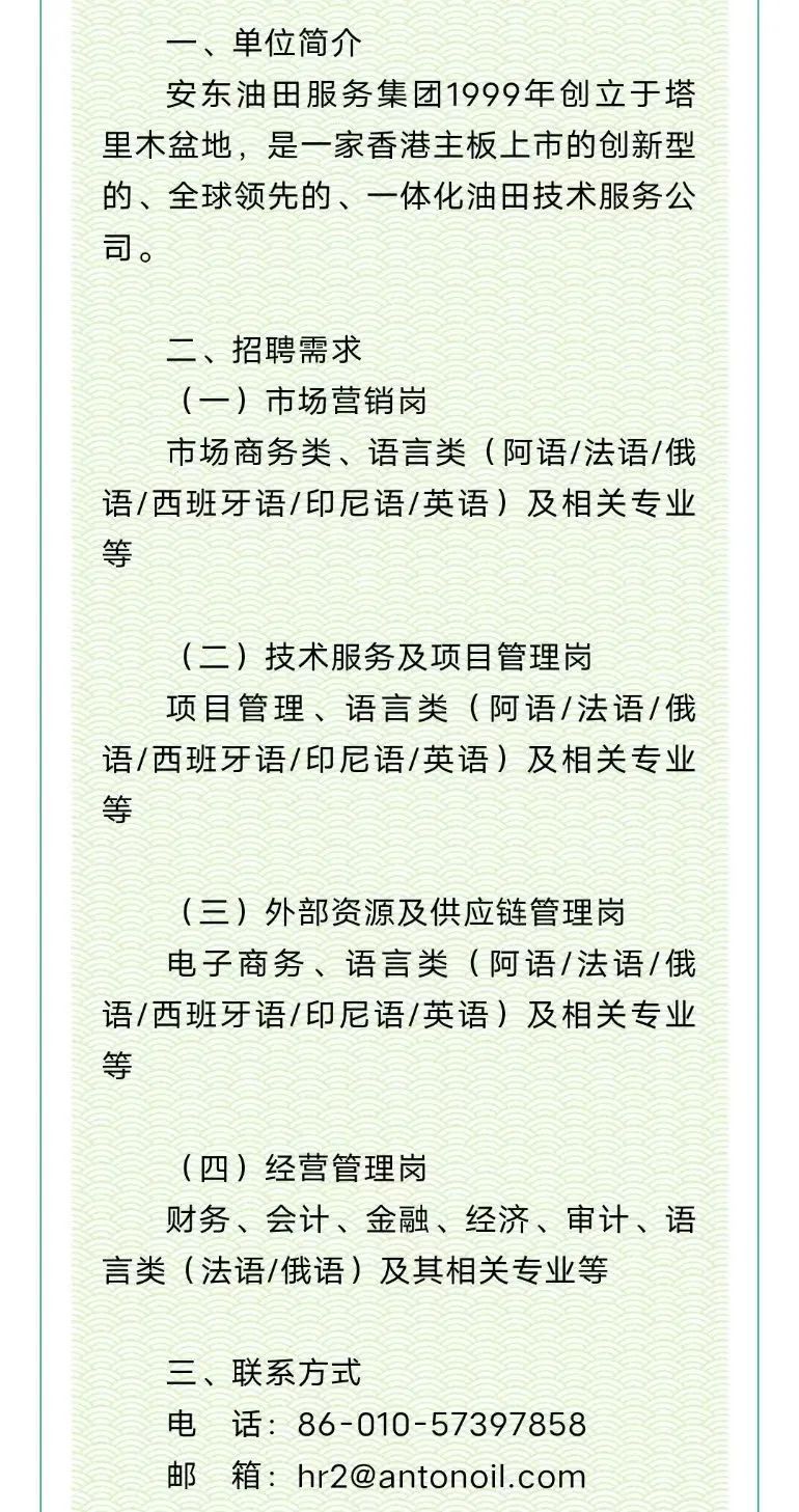 安东油田服务集团招聘