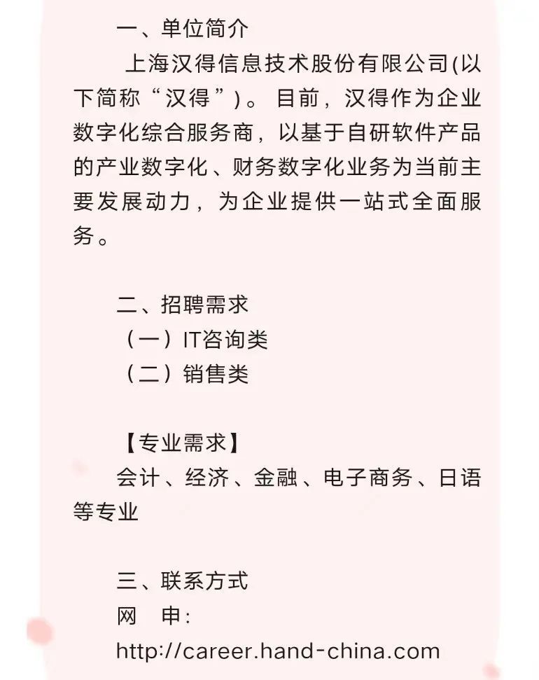 上海汉得信息技术股份有限公司招聘